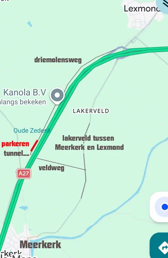 Als adres kan je Driemolensweg 17, 4128LS Lexmond invullen. Parkeer dan bij het tunneltje.