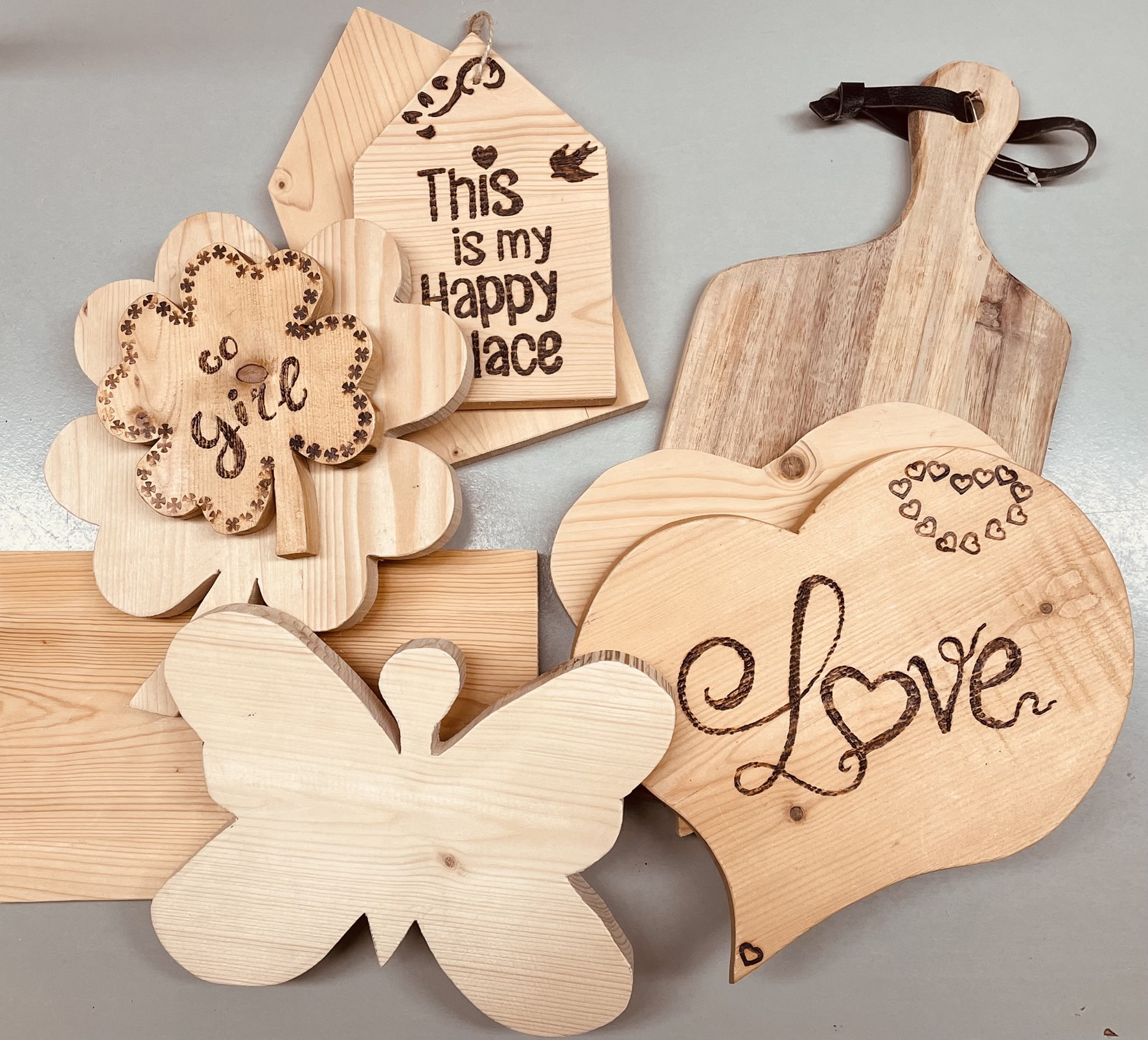 Hierbij maak jij kennis met het houtbranden op verschillende vormen en kan er gekozen worden uit de aanwezige teksten en afbeeldingen. Deze breng je met transferpapier over op het hout en daarna ga je met de houtbrander alles is het hout branden. Heb je zelf een leuke afbeelding en/of tekst, neem deze mee en breng het over op je gewenste vorm van hout.