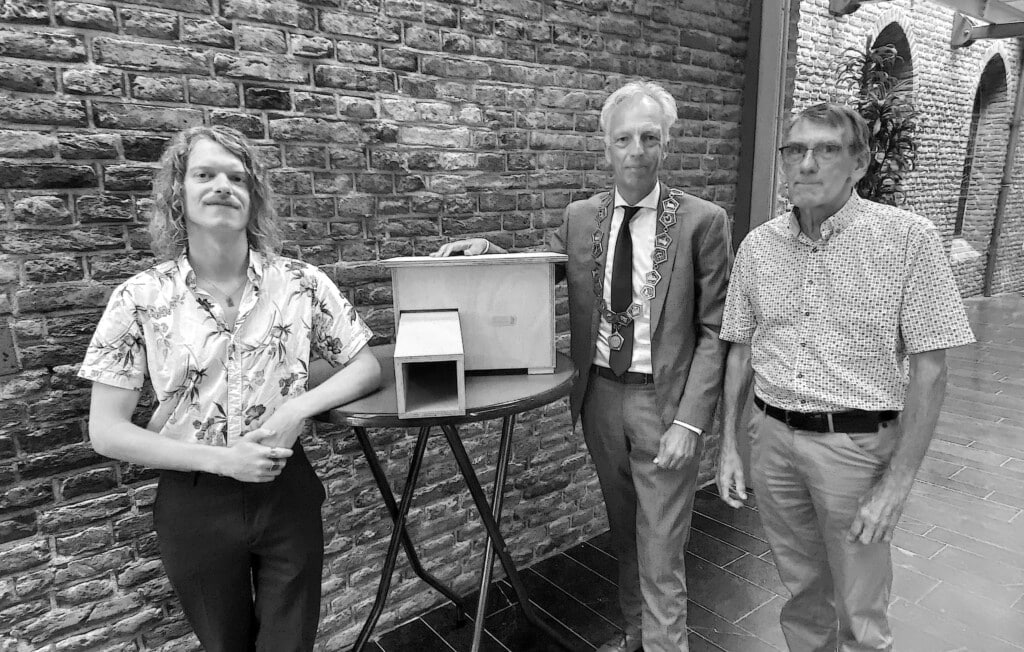 De egelkasten zijn klaar om uitgedeeld te worden aan de bewoners van de gemeente Vijfheerenlanden. Burgemeester Sjors Fröhlich ontving op 3 september in Vianen het eerste exemplaar.