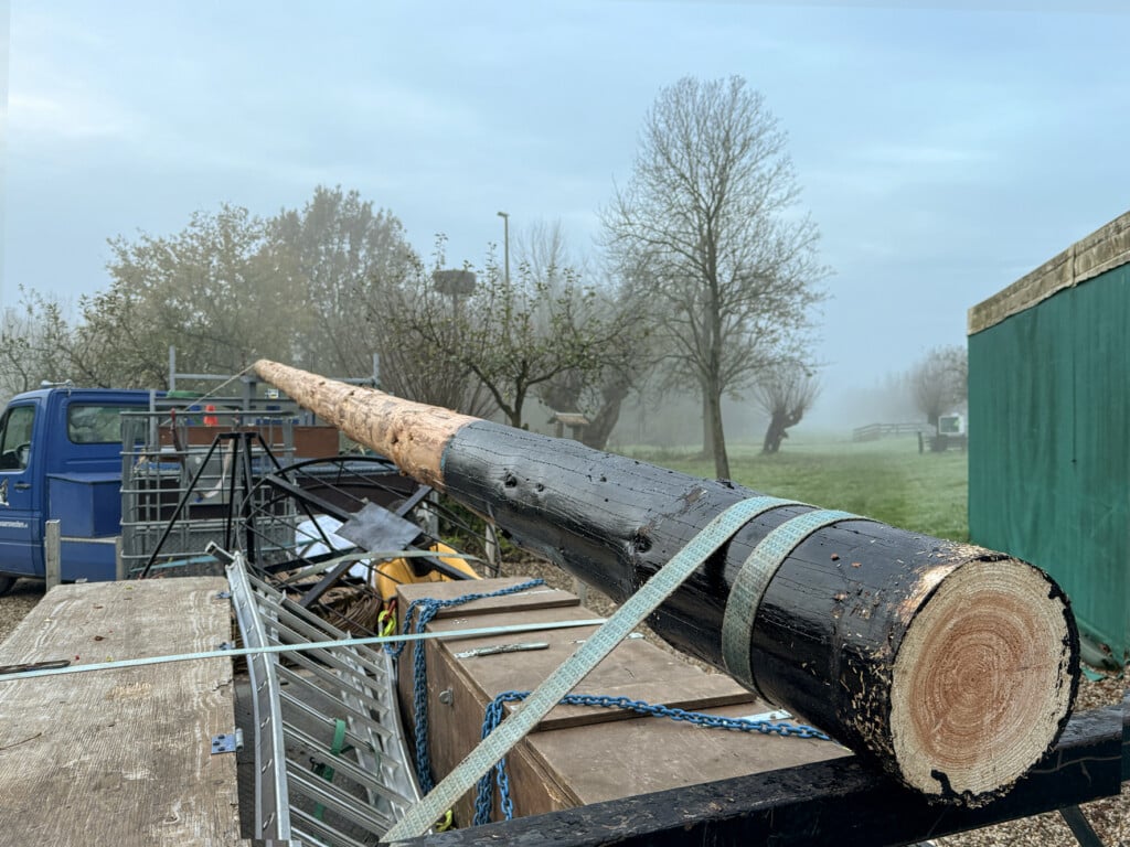 Enkele dagen voor de intocht van Sinterklaas in Vianen werd het ooievaarsnest en de bijbehorende paal op ons terrein vervangen. Sinterklaas zal de sponsor toch niet zijn van deze fraaie gift?